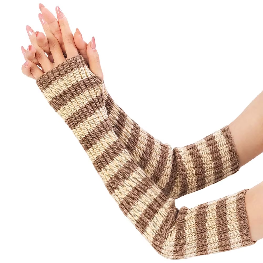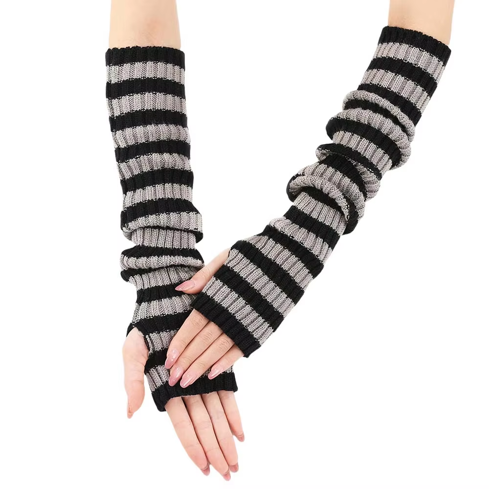 Long Striped Half-Finger Fingerless Gloves For Warmth